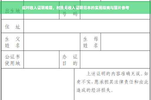 在当前社会,收入证明已成为许多场合的必备材料,无论是办理贷款、申请福利还是其他事务,它都是证明个人经济能力的重要依据,在农村地区,尤其是一些经济相对落后的地区,许多村民可能面临无法提供有效收入证明的问题,本文将为您提供一份村民无收入证明范本,并探讨如何有效应对这一难题。