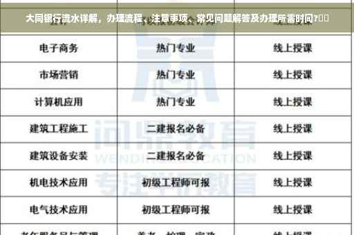 随着金融行业的快速发展,银行业务办理已成为人们日常生活中不可或缺的一部分,银行流水作为证明个人或企业经济往来的重要文件,广泛应用于贷款申请、签证办理、业务洽谈等场景,大同市作为山西省的重要城市,其银行业发展也日渐繁荣,本文将为您详细解读在大同市办理银行流水的过程、注意事项以及常见问题,助您轻松了解并办理银行流水。