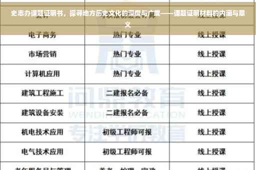 史志,即地方志,是记载某一地区历史、文化、社会、自然等各方面情况的书籍,史志办作为负责编纂地方志的机构,肩负着记录地方历史文化的重任,随着文化自信的不断提升,越来越多的人开始关注地方历史文化,为了更好地挖掘和传承地方历史文化,史志办开展了一系列课题研究,本文将详细介绍其中一份关于探究地方历史文化深度与广度的课题证明书。