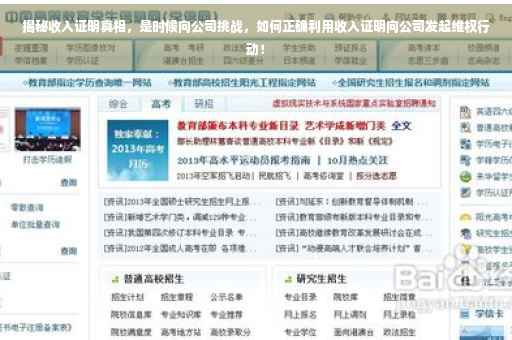 摘要:本文将揭示收入证明背后的真相,探讨如何向公司发起挑战。通过深入了解收入证明的重要性及其背后的细节,读者将学会如何正确获取收入证明并应对公司可能存在的问题。本文将介绍如何有效地利用收入证明来维护自身权益,同时提供关于如何撰写告公司信件的实用建议。让我们共同揭开收入证明背后的真相,维护自己的合法权益。