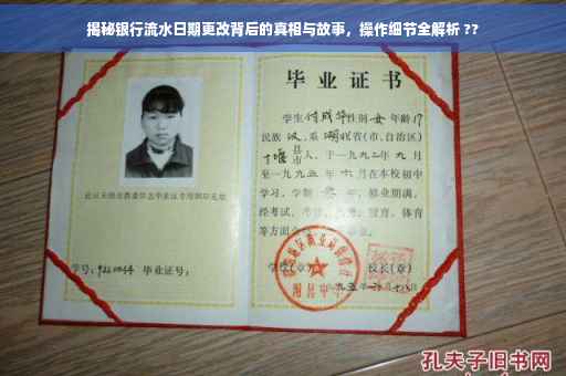 摘要:本文探讨了银行流水日期更改的真相,揭示了背后不为人知的故事。文章指出,银行流水日期更改并非易事,需要了解相关流程和注意事项。提醒读者在更改银行流水日期时要谨慎,避免陷入不必要的风险。本文旨在帮助读者了解银行流水日期更改的真相,增加金融安全意识。