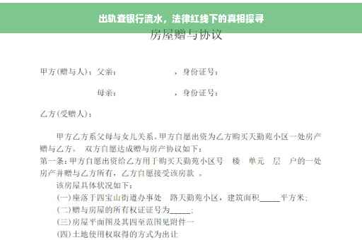 为了验证配偶是否出轨,一些人会选择查询其银行流水作为证据,查银行流水作为一种调查手段,旨在揭开真相的面纱,从法律角度讲,这一行为涉嫌侵犯他人的隐私权,隐私权是公民的基本权利之一,受到法律严格保护,未经他人同意,擅自查询他人的银行流水属于侵犯隐私权的行为,情节严重可能构成非法获取公民个人信息罪。
