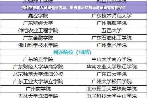 摘要:本文将揭示学校收入证明盖章背后的故事,探究一份收入证明中蕴含的细节。文章将探讨学校开具的收入证明盖章是否有效,并揭示这一过程背后可能存在的各种情况和因素。通过深入了解这些细节,读者可以更好地理解收入证明的重要性和其中的复杂性。