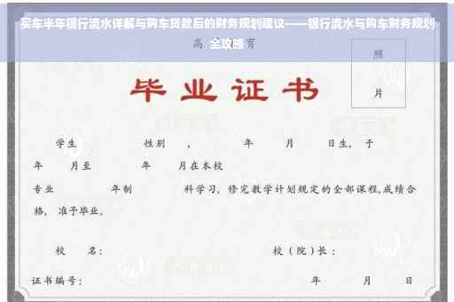 摘要:本文介绍了购车半年银行流水的详细情况,包括银行流水的重要性及其在购车贷款申请过程中的作用。文章还提供了购车贷款后的财务规划建议,包括如何合理规划个人财务,确保按时还款。简要探讨了买车银行流水需要的时间长度。旨在帮助消费者更好地了解购车过程中的财务要求,实现稳健的财务规划。