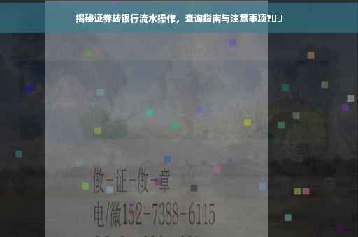 随着金融市场的繁荣,证券转银行流水成为投资者关注的热点,本文将深入解析证券转银行流水的概念、详细指导操作过程,并强调注意事项,帮助投资者更熟练地掌握这一金融操作。