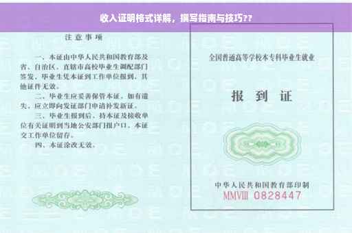 摘要:本文将详细介绍收入证明的具体格式和写法。通过本文,您将了解如何正确填写收入证明的各项要素,包括公司名称、部门、职位、入职时间、收入情况等。本文旨在帮助需要开具收入证明的个人或企业了解相关格式要求,确保证明的真实性和有效性。阅读本文,您将轻松掌握收入证明的写作要点,为您的工作和生活提供便利。