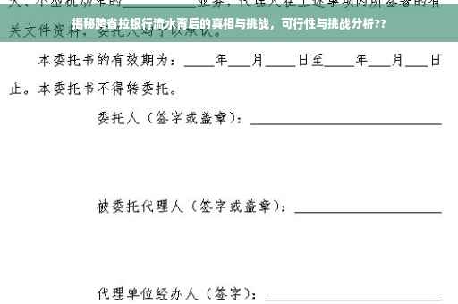 摘要:本文将探讨跨省拉银行流水的真相与挑战。通过深入了解,我们发现跨省拉银行流水虽然可行,但面临诸多难点和挑战,如不同银行系统间的数据共享问题、隐私保护法规的限制等。本文将揭示背后的真相,帮助读者了解跨省拉银行流水的实际操作和所面临的困难。