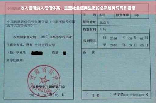 随着社会信用体系建设的逐渐完善,征信已成为评估个人及企业信用状况的关键工具,在这样的背景下,收入证明作为评估个人信用能力的重要参数,纳入征信体系成为了重塑社会信用生态的必然趋势,这一举措不仅有助于防范金融风险、维护社会公平正义,更是对提高信贷市场透明度、推动社会信用体系建设具有深远意义。