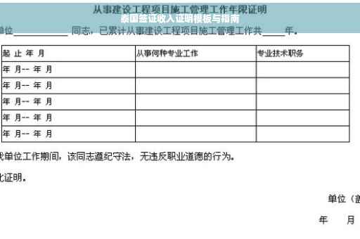 摘要:本文介绍了泰国签证收入证明的英文模板,包括详细步骤和所需材料,以帮助申请人顺利申请泰国签证。模板中包含个人信息、收入证明及工作证明等重要内容,申请人需按照模板要求填写并提交相关证明材料。通过此模板,申请人可以更加便捷地申请泰国签证,避免繁琐的手续和不必要的麻烦。