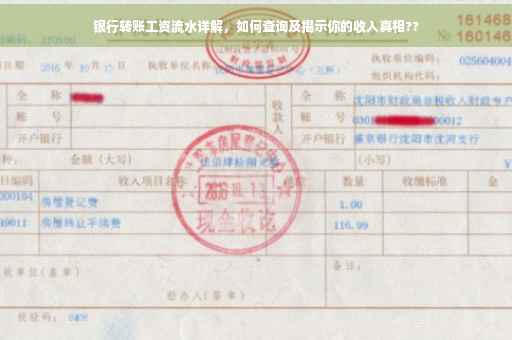 摘要:银行转账工资流水是揭示个人收入真相的重要途径。查询银行转账工资流水,可通过网上银行、手机银行或前往银行柜台进行。通过查看工资流水,可了解个人的工资发放情况、收入来源及收入水平,有助于个人财务管理和规划。也能确保个人权益,防止工资被拖欠或存在其他纠纷。