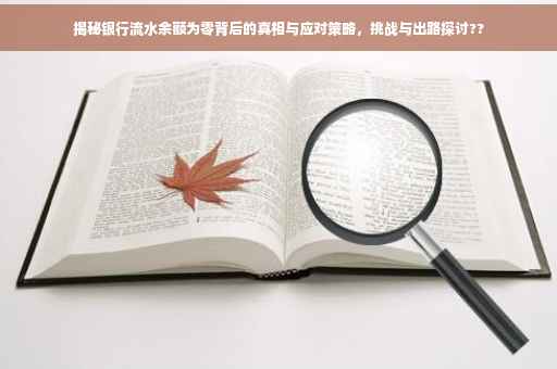 摘要:银行流水余额没钱可能涉及多种原因,包括个人财务管理不当、收入不稳定等。面对这一挑战,个人需审视自身财务状况,调整消费习惯,增加收入来源。了解银行流水记录的重要性,合理规划资金流动,确保短期现金流充足。可采取理财策略,提高资金使用效率。解决银行流水余额没钱的问题需综合考虑个人财务规划、收入来源及理财策略等方面。