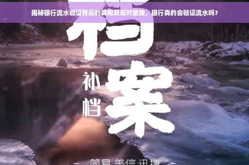 随着金融行业的快速发展,银行业务日趋复杂多样,银行流水验证作为信贷评估的重要环节,逐渐受到广泛关注,无论是个人贷款、信用卡申请,还是企业贷款,银行流水验证都扮演着关键角色,本文将深入探讨银行流水验证的背景、目的以及应对之策。