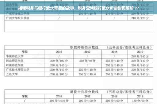 摘要:税务与银行流水之间的关系备受关注,背后的故事引人深思。关于税务打银行流水所需的时间,因各种因素而异。本文将探讨税务与银行流水的关系,并揭示其中的故事,同时介绍税务查询银行流水的时间长度及相关注意事项。让读者更好地了解税务与银行之间的合作与互动。