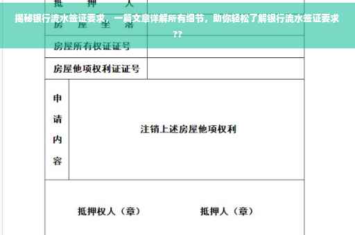 随着全球化的发展,越来越多的人选择出国留学、旅游或进行商务活动,在办理签证时,银行流水作为财务证明的重要一环,越来越受到关注,本文将详细介绍银行流水签证要求的相关内容,帮助读者更好地了解和应对。