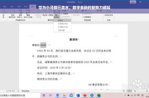 随着科技的飞速发展,金融行业正在经历一场前所未有的变革,华为小马银行作为新兴的金融机构,以其高效、便捷的服务,迅速赢得了广大用户的青睐,我们将带您走进华为小马银行,探究其独特的魅力以及如何通过银行流水记录您的每一笔交易。