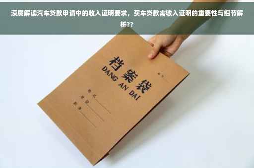 随着生活水平的提高,汽车已成为许多家庭的重要出行工具,面对不断上涨的车价,贷款购车成为越来越多消费者的选择,在申请车贷时,收入证明成为了一项至关重要的申请材料,本文旨在详细介绍买车贷款为何需要收入证明,并解读其中的要求和细节,以帮助广大消费者更好地了解并顺利获得车贷。