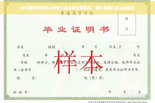 查询去世亲人的银行流水是处理遗产事务不可或缺的一环,在查询过程中,读者需按照本文提供的流程、注意事项和解答常见问题来操作,以确保顺利完成遗产继承事宜。
