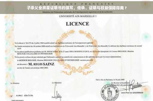 随着社会的不断进步与发展,家族传承逐渐成为人们瞩目的焦点,在众多的传承中,房屋作为重要的财产之一,其传承问题更是备受关注,自古以来,子承父业便是天经地义的事情,而房屋作为家族财产的重要组成部分,其在传承过程中的证明与保障问题显得尤为关键,本文将围绕子承父业的房屋证明书展开讨论,旨在普及相关知识,帮助大家更好地理解和处理房屋传承问题。