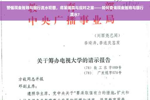 摘要:本文警告公众注意现金贿赂与银行流水犯罪的危害,揭示了这些行为的严重后果。文章介绍了如何识别现金贿赂和银行流水犯罪,并探讨了应对之策。本文也提供了关于如何查询银行流水的方法。呼吁大家保持警惕,维护金融秩序和社会公正。