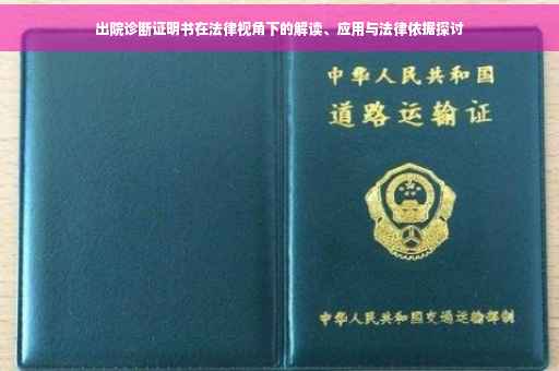 摘要:本文探讨了出院诊断证明书在法律视角下的解读与应用。文章介绍了出院诊断证明书的重要性,分析了其在法律上的依据和效力,并探讨了其在医疗纠纷、保险理赔、工伤鉴定等方面的实际应用。通过法律视角的解读,帮助人们更好地理解和使用出院诊断证明书,以维护自身合法权益。