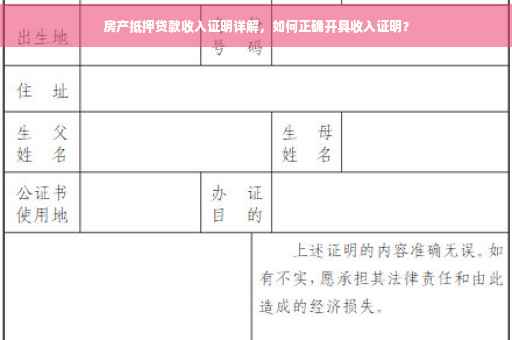 摘要:,,本文详细解释了房产抵押贷款收入证明的重要性及其开具流程。收入证明是房产抵押贷款过程中的关键步骤,涉及到借款人信用评估及贷款额度审批。文章介绍了如何准备和提交必要的材料,包括个人身份证明、房产证明、工作证明和银行流水等,以及如何正确填写申请表。提醒借款人注意保持信用记录良好,确保贷款顺利审批。