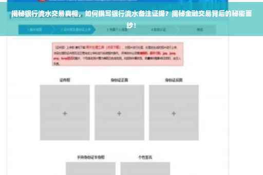 摘要:银行流水备注证据在金融交易中扮演着重要角色,揭开金融交易的神秘面纱。撰写银行流水备注证据时需清晰明了,包括交易日期、交易双方、交易金额等详细信息。通过规范的备注,确保交易记录的准确性和可信度,为金融纠纷提供有力证据。本文旨在指导读者如何正确书写银行流水备注,以便在金融交易中保障自身权益。