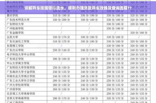 摘要:本篇文章将详细介绍购车按揭银行流水的重要性以及如何顺利办理按揭贷款购车。文章将指导读者如何查询银行流水,以确保购车贷款流程的顺利进行。通过本文,读者将了解银行流水的重要性及其在按揭贷款购车过程中的作用,从而更加顺利地完成购车计划。