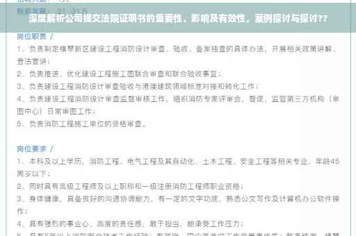 在现代社会,随着法治建设的不断完善,公司提交法院证明书已成为企业运营中不可或缺的一环,一份合适的证明书不仅有助于企业在法律纠纷中占据有利地位,更有助于维护企业的声誉和合法权益,本文将详细解析公司提交法院证明书的重要性,影响,以及在实际操作中的一些注意事项。