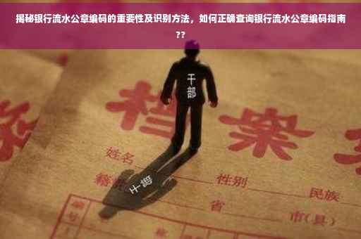 摘要:本文将介绍银行流水公章编码的重要性以及如何正确识别。通过了解银行流水公章编码的含义和作用,读者可以更好地保障自身权益,避免遭受金融欺诈。本文还将介绍如何查询银行流水公章编码,为读者提供实用的操作指南。,,关键词:银行流水公章编码、重要性、识别方法、查询方法。