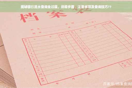 摘要:本文将详细揭秘银行流水查询全过程,包括具体步骤和注意事项。读者将了解如何通过简单几步查询银行流水,包括登录银行官网、进入个人账户、选择时间范围、查看流水详情等。本文还将提醒注意事项,如保护个人隐私、确认账户安全、留意流水异常等,以帮助读者顺利完成银行流水查询。