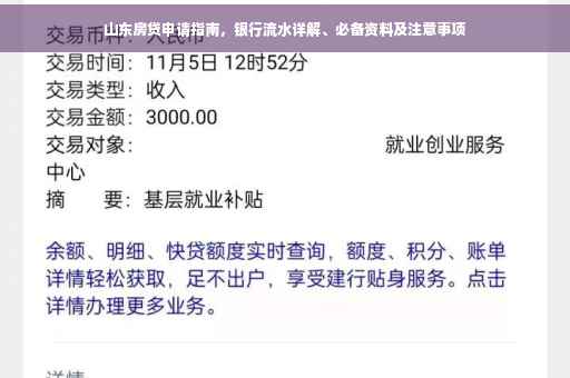 在山东申请房贷的过程中,银行流水作为审核的重要一环,对贷款申请的成功与否起到至关重要的作用,本文旨在详细介绍山东地区房贷银行流水的相关知识,帮助广大购房者了解银行流水的重要性及其在申请房贷过程中的注意事项。