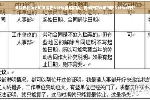 在现代社会,随着法治建设的逐渐完善,法律事务越来越受到人们的关注,在涉及法律诉讼的过程中,法院常常要求当事人提供各类证明材料,以证明其身份、财产状况等,收入证明是常见的证明材料之一,本文将围绕法院要求的收入证明模板这一主题,从自媒体作者的视角进行深入解读,帮助大家更好地理解和应对相关情况。