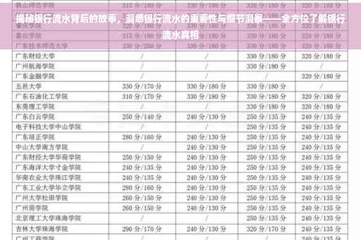 银行流水的重要性及其在日常生活中的广泛应用已经引起了越来越多人的关注,本文将通过介绍五个不同银行的流水特点,帮助读者深入了解银行流水背后的故事,掌握银行流水的重要性与细节洞察。