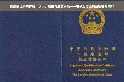 随着社会的快速发展,传染病防控工作愈发受到人们的关注,作为自媒体作者,我们有义务向公众传递准确、全面的传染病相关信息,本文将深入解析传染病证明书的作用、内容要点及使用注意事项,助您更好地了解和运用这一关键文件。