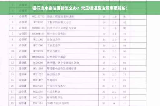摘要:银行流水备注写错是常见错误,需要注意。一旦发现有误,应及时联系银行进行更正。常见错误包括备注内容与实际交易不符、填写错误日期等。为了避免这些错误,建议在交易前仔细核对信息,确保备注内容的准确性。正确的银行流水备注有助于保障个人权益和企业财务的规范管理。