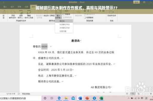 在当今社会,随着金融行业的快速发展,越来越多的人开始关注银行流水制作合作这一领域,由于缺乏专业知识和经验,很多人对银行流水制作合作存在误解和疑虑,本文将详细介绍银行流水制作合作的相关知识,帮助大家了解背后的真相与潜在风险。