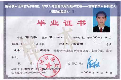 随着社会的快速发展,个人信用和收入状况在日常生活和经济活动中扮演着愈发重要的角色,收入证明作为评估个人经济实力的重要依据,在求职、贷款、信用卡申请等方面具有举足轻重的作用,近年来社会上逐渐出现一种名为“收入证明非本人开具”的现象,这一现象背后潜藏的风险逐渐浮出水面,引起了社会各界的广泛关注,本文将深入探讨这种现象背后的风险及其成因,并寻求应对之道。