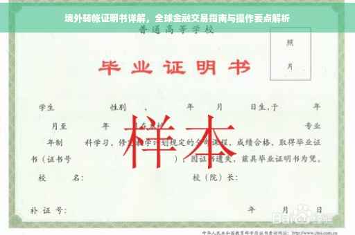 摘要:境外转帐证明书是跨境金融交易的重要文件,涉及全球金融交易的深度解析和操作指南。编写境外转帐证明书需遵循规范格式,包括必要信息如交易双方信息、转账金额、转账日期等。本文旨在提供详细的操作指南,帮助读者了解如何正确撰写境外转帐证明书,确保金融交易的顺利进行。