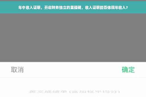 年中收入证明不仅是我们财务独立的重要标志,更是我们职业生涯中的里程碑,通过了解如何获取、解读和利用收入证明,我们可以更好地规划自己的财务未来,实现更高的生活品质和更广阔的发展空间,希望本文能对你有所帮助,祝愿你在追求财务独立的道路上越走越远。