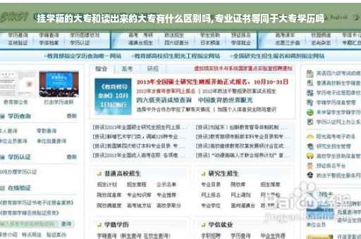 挂学籍的大专于读出来的大专毕业证可能有所区别。专科毕业证是由教育部发证学校盖章,校长签字。的文评证书。而挂学籍的大专。毕业证书也是教育部发。盖章。证明大专毕业。一般都承认是大专毕业证。有的企业如果要求严格。会选择专科毕业。毕竟他们是专业学习出来的。在学校系统地学习了专业知识。但是通过自己的学习。理论多于实际相结合。不一定比那些专科出来的差。