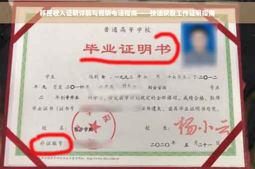 摘要:,,本文详细解读了移民收入证明的相关内容,包括其重要性、准备要点和注意事项。还提供了一份昆明电话指南,帮助移民在需要时快速找到相关信息和服务。文章还简要提及了移民工作证明的相关内容。通过本文,读者可以更好地了解移民过程中的财务证明和工作证明的重要性,以及如何在昆明地区获取相关服务和信息。