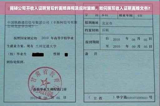 摘要:在离婚过程中,公司开具的收入证明成为重要的证据之一。背后可能隐藏着真相与应对之策。本文将探讨公司开收入证明离婚背后的真相,包括可能存在的风险和问题,并提供相应的应对策略和建议。关于如何撰写收入证明,本文也将给出简要指导。