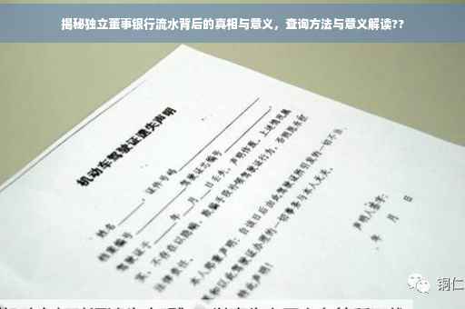近年来,随着金融市场的不断发展,独立董事银行流水这一专业术语逐渐进入公众视野,本文将对其含义、作用以及背后的真相进行深入探讨,帮助读者更好地理解这一金融现象。