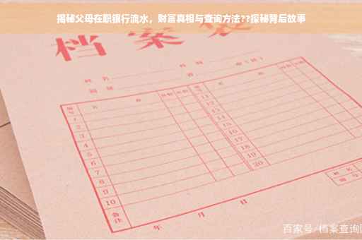 摘要:本文将揭示父母在职银行流水的财富背后的故事与真相,探讨如何查询父母在职银行的流水记录。通过简单的步骤和注意事项,帮助读者了解银行流水的重要性,并学会合法合规地查询和分析父母的银行流水,以了解家庭的财务状况。