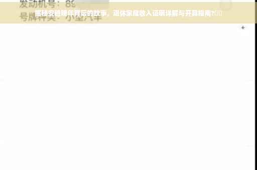 摘要:本文将介绍退休家庭收入证明的重要性及其背后的故事。通过了解如何开具退休家庭收入证明,读者可以更好地理解如何确保安稳的晚年生活。本文将涵盖如何准备相关材料、向有关部门提交申请以及注意事项等内容,以帮助读者顺利获取退休家庭收入证明。