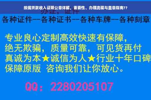 在当今社会,随着房价的不断攀升,越来越多的人选择通过按揭贷款购买房屋,在申请按揭贷款的过程中,收入证明公章是至关重要的一环,本文将详细介绍按揭贷款收入证明公章的作用、重要性以及办理流程,帮助广大读者顺利办理按揭贷款。