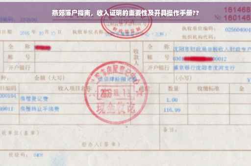 随着城市化进程的加速,越来越多的人选择到城市谋求发展,其中燕郊作为北京周边的重要区域,吸引了大量外来人口,对于想要在燕郊落户的人来说,收入证明是一个重要的环节,本文将详细介绍燕郊落户过程中收入证明的作用、注意事项以及实际操作方法。