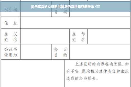 拐卖妇女是一种严重的犯罪行为,不仅侵犯了个人的人身自由,还破坏了家庭的幸福和社会的稳定,这些被拐卖的妇女往往被迫从事非法活动,甚至被迫卖淫、生育等,身心遭受巨大摧残,而拐卖妇女证明书则是这一罪恶行为的证据,它的存在使得这一犯罪行为更加有恃无恐。
