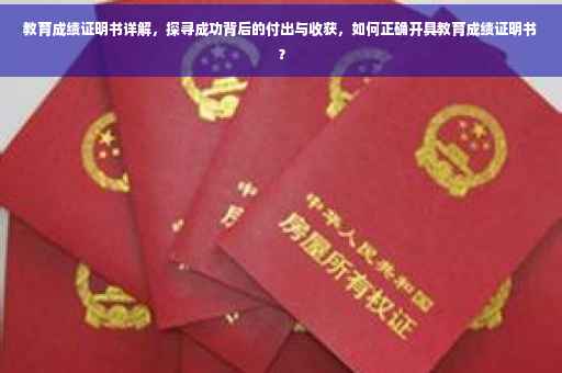 摘要:本文将介绍如何开具教育成绩证明书,并探讨成功背后的辛勤付出与收获。通过了解成绩证明书的开具流程和注意事项,读者可以更好地展现自己的学业成就和成长历程。文章将指导读者准备必要材料、遵循正确格式,并强调真实性和准确性的重要性。教育成绩证明书不仅是学业成果的体现,更是努力和付出的见证。