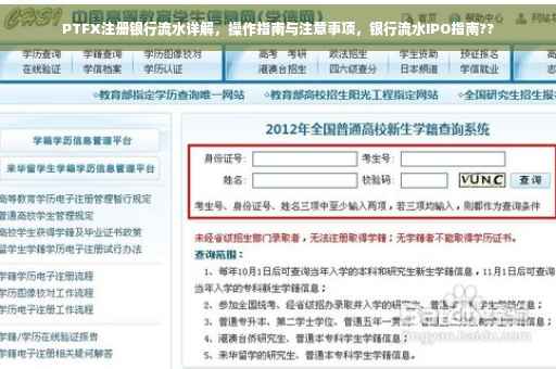 摘要:本文将详细介绍PTFX注册银行的流水操作,包括操作指南和注意事项。通过本文,您将了解如何正确注册银行流水,包括必要的步骤和流程。还将强调一些注意事项,以帮助您避免在操作过程中遇到不必要的麻烦。对于需要进行银行流水IPO的读者,本文也将提供有用的参考信息。